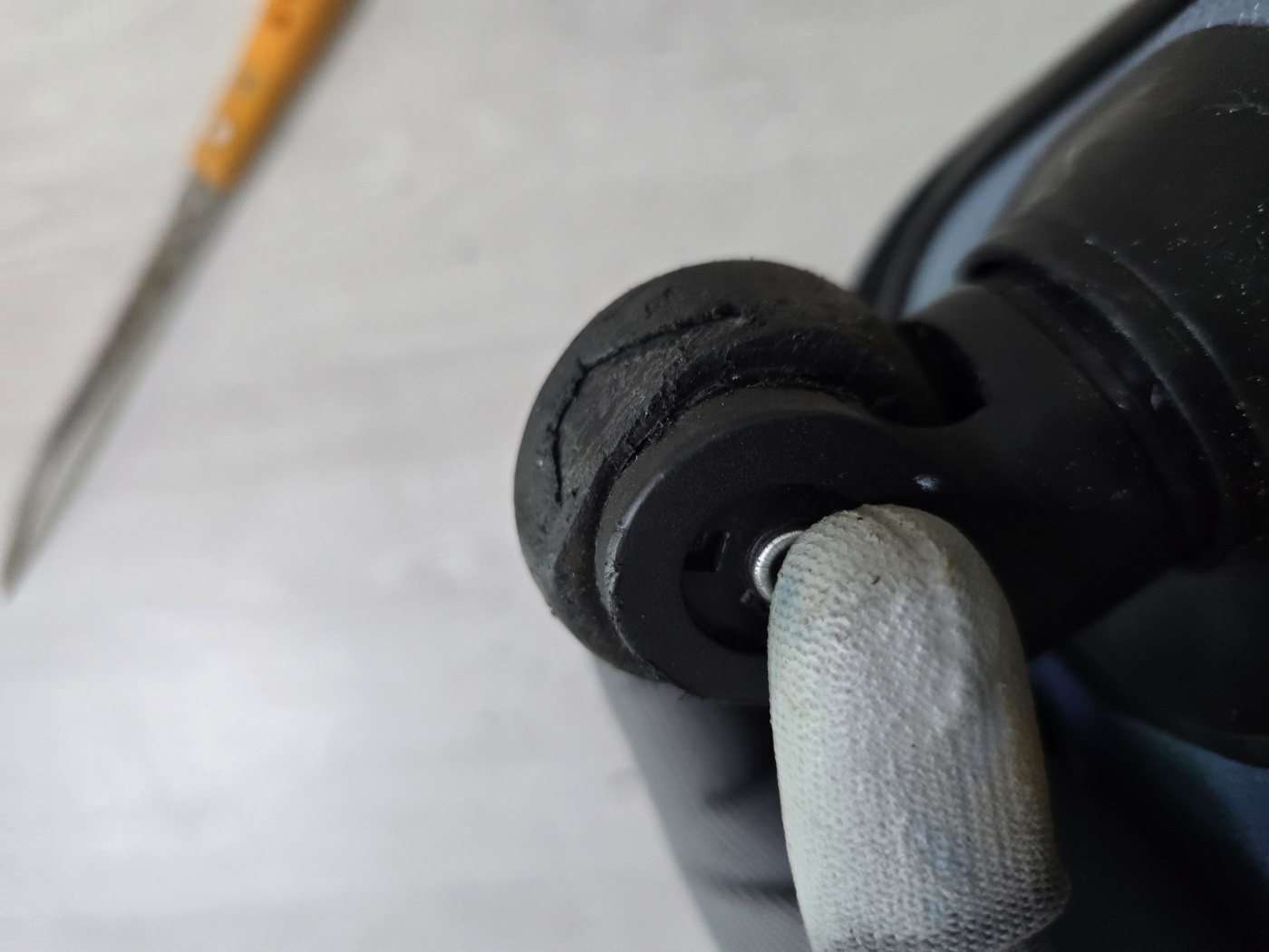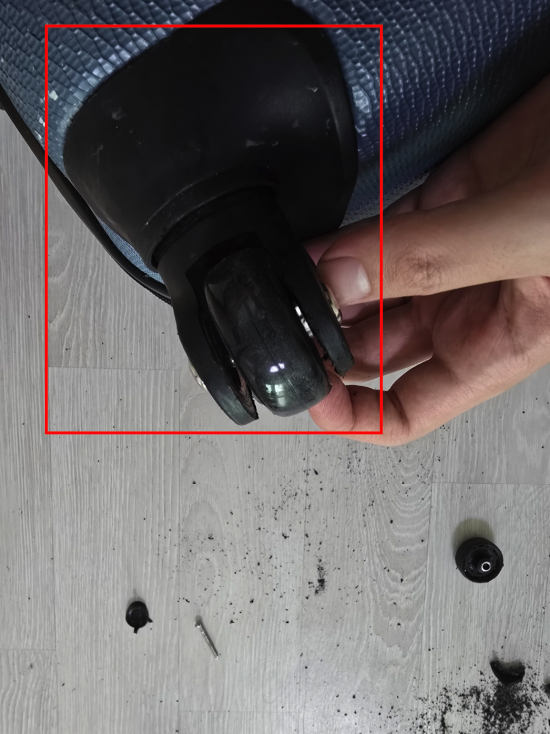 은근 힘이 많이 든다. 아래 빨간색 지점에 보이는 철심 부분을 톱으로 잘라내면 바퀴를 분리할 수 있다.