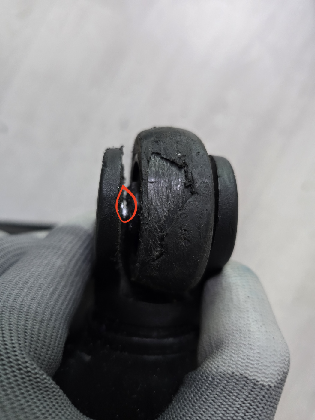 바퀴를 감싸던 플라스틱 껍질이 심하게 훼손된 것이다.