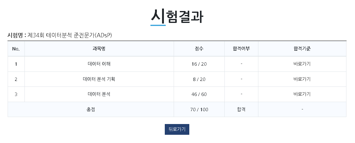 -보통의 시험의 경우 필기 + 실기 약 3달의 과정을 거치지만 ADsP는 핅기한번이면 끝난다.