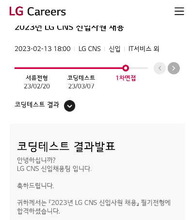 2023-03-07 : 상반기 코딩 테스트 결과 발표(합격)
