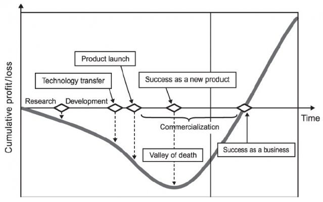 많은 기업가들이 초기에 사업을 접는 이유는 죽음의 계곡이라고 불리는 Death valley 때문이다.