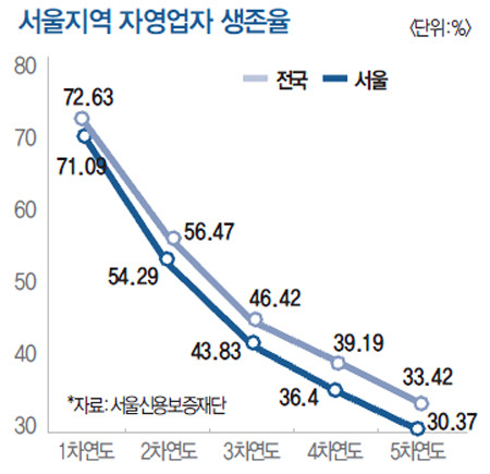 5년 생존률은 30%에 그친다. 10명 중 7명은 5년내로 문 닫는다.
